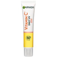 Ontdek onze Garnier SkinActive Vitamin C Daily UV Brightening Fluid, een revolutionaire dagelijkse gezichtsverzorging die niet alleen je huid stralender maakt, maar ook de zichtbaarheid van pigmentvlekken vermindert. Deze unieke formule met een lichte tint zorgt voor een direct stralend effect en laat geen witte waas achter na het uitsmeren. Onze formule is verrijkt met Vitamine C, een ingrediënt dat bekend staat om zijn vermogen om de teint te verbeteren en de huid te laten stralen. We gebruiken Vitamine Cg, een afgeleide van Vitamine C, voor maximale effectiviteit. Daarnaast bevat de formule minerale pigmenten die direct voor een stralende huid zorgen.