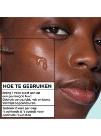 Breng 1 volle pipet aan op een gereinigde huid. Gebruik op gezicht, nek en borst. Vermijd oogcontouren. Gebruik 2 keer per dag: 's ochtends & 's avonds voor optimale resultaten.