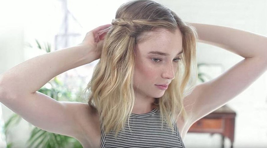Heb je van nature een slag in je haar, dan is dit een simpel kapsel voor op kantoor. Om zelf een slag te creëren in gewassen haar, gebruik je een föhn met diffuser om het haar te drogen. Breng vervolgens wat leave-in cream aan om het glanzend en strak in model te houden, zoals Loving Blends Honing Goud leave-in crème voor breekbaar of beschadigd haar. Trek een middenscheiding of zijscheiding en pak een pluk haar van de zijkant om een vlecht te maken. Gebruik schuifspeldjes om het haar naar achter te schuiven en het uit je gezicht te houden.