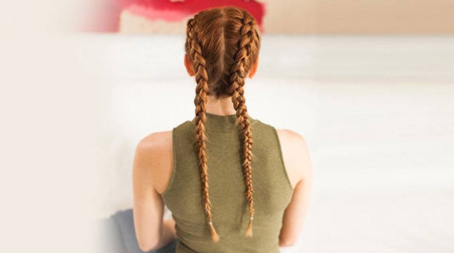 Borstel je haar en verdeel wat Loving Blends Honing Goud leave-in cream over het haar. Verdeel de helft van het haar in twee evenredige delen waarvan je twee vlechten gaat maken. Begin van bovenaf strak tegen de hoofdhuid aan te vlechten tot aan de nek. Daarbij vlecht je niet bovenlangs, maar pak je de buitenste strengen steeds onderdoor, waardoor de vlecht uiteindelijk op het haar ligt en het echte cornrow vlechten worden.